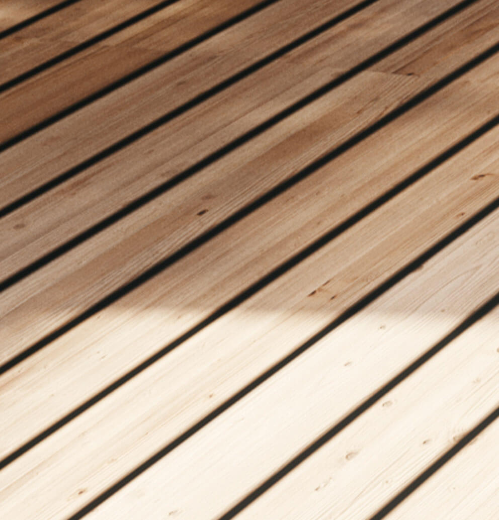 Private Terrassenbereiche Lärchen-Holzrost mit offenen Fugen.
